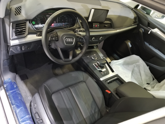 18款奥迪Q5内饰持续了奥迪的家属设计气概,中控台操纵面板略向驾驶者偏向歪斜,中控台以及门板上带有条纹的木质饰板,很好的提拔了全部内饰质感。真皮包裹的三幅式偏向盘也供给了不错的手感,而且搭载最新一代MMI多媒体信息交互体系,团体科技感很强。Q5总体做工以及用料方面照样相称精细精美的,展现出奥迪品牌一向所夸大的科技感与精致化。