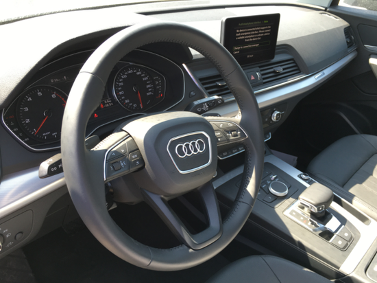 2018款奥迪Q5与奥迪其他车型相比,奥迪Q5的内饰并没有什么不同之处,奥迪几乎所有车型的内饰都采用了同—种风格。但是镶嵌在车门、操控台以及挡台等处的实木饰条仍引起了我们的注意。实木饰板在奥迪其他车型上的使用并不多见,足见奥迪对于Q5的重视程度