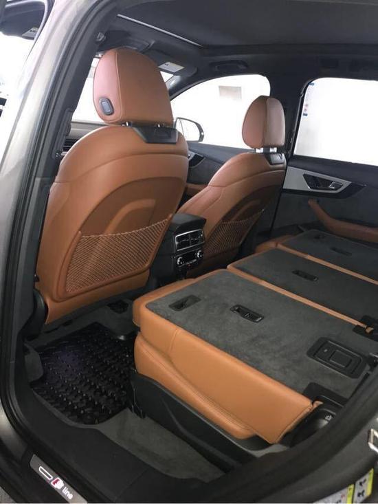 018款奥迪Q7的内饰延续了奥迪一贯的严谨细致,这应该是奥迪内饰的一个发展方向,在材质和做工上豪华精细。新奥迪Q7真皮包裹的四辐式方向盘造型饱满,角度以及深度可电动4向可调节,方向盘左侧的控制杆主要控制远近光以及转向灯,其它灯光控制通过驾驶员左侧的旋钮控制。考虑到SUV车型应有的空间表现,第二排座椅除了标准的4/6椅背分离之外,座椅还可进行前后滑移与椅背倾斜调整,加上简易的快速倾倒功能,仅需拨起座椅旁的释放杆,座椅即可向前折迭,并与第三排座椅、尾厢形成平坦底板。