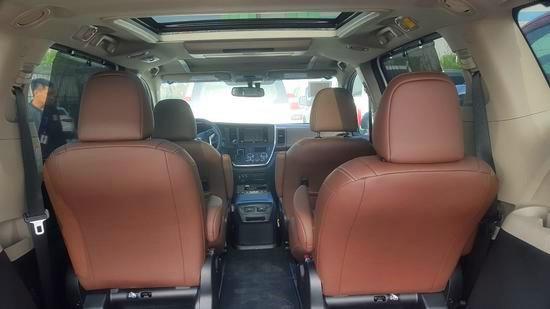 内饰方面:2017款丰田塞纳内饰整体很豪华精致,这也是丰田多年来的设计坚持,而且造型很有科技感。和普瑞维亚一样让人印象深刻桃木镶嵌的中控台更显格调高雅,方向盘集成多种功能操作便利方向盘集成多种功能操作便利减少对安全的影响并且带有语音控制丰田塞纳配备有多功能方向盘一键式启动三区自动空调,座椅加热、真皮座椅等配置车厢内部可选择7座或8座设计其中7座版第二排座椅可进行多向调节并配备有腿托。以增加舒适性新车以充沛的动力宽广的视野引众多消费者为之驻足。新款塞纳采用了吸音的材料,能提供最好的的乘座舒适性。内部空间充裕储物空间多,座椅舒适,即适合商用又可以家庭使用。