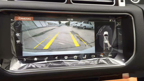 细节方面:路虎揽胜行政发动机盖上range rover字样,依然延续着经典。 坐在驾驶席上,可 以通过显示屏,进行GPS导航;在狭窄路段时,还可以通过它,观察汽车的前后左右,基本做到无视觉 死角,对驾驶很有帮助。