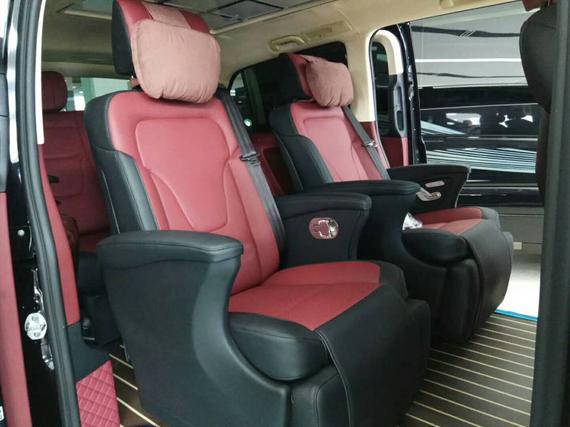 对于这样一款奔驰V260改装商务车而言,驾驶舱的格调应该说是只做了少许改动,毕竟继承至奔驰家族的新式轿车化中控设置,本就具备常规商务车难以望其项 背 的设计感与操控性能,那么本文中也就着重介绍与奔驰进口维特斯商务车,基本上在原车按键得以原位保留的情况下,采用了豪华进口橡木纹饰板取代 原车 饰板,三幅式方向盘也加入了Nappa小牛皮编织缝线与之双拼,奢华质感十足,扶手箱则被全新设计的恒温杯托与20L容量的车载冰箱所取代。
