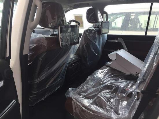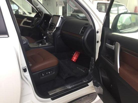 车身设计详情17款丰田酷路泽5700整个操控区域色调为 深色系,仪表盘、方向盘和排挡等位置均配以桃木装点,尽显豪华质感。不但具有DVD导航,这款车的倒车 影像还可以显示在内后视镜上,中央扶手箱还装备了冷藏箱,这些都与中规版车型有所不同。17款丰田酷路泽5700在中控台的面板换成与内饰新色系更搭的黑色钢琴烤漆材质,真皮座椅与桃木内饰的搭配使整个车内更显高贵