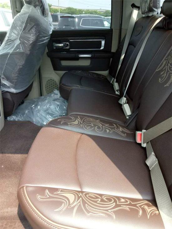 2017款道奇公羊皮卡长角号真皮座椅各自独立,配有加热、按摩等舒适功能,每个座椅独立配一个操控手柄,各项功能由乘坐者自己控制。运动座椅所带来的包裹性要比普通座椅好很多,后排中间乘客同样拥有头枕和三点式安全带。