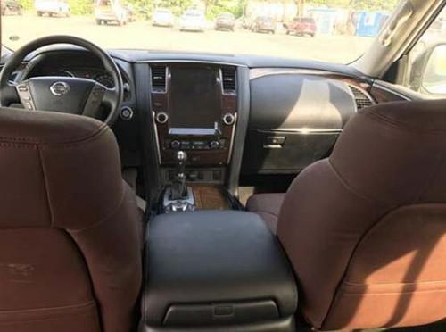 18中东款日产尼桑途乐v8兼具了舒适性和功能性。仍然为三排座车型,内饰材质也更加的考究,5.6l使用了皮革,le铝以及木纹样条作为点缀。
