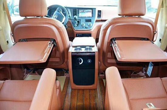 配置方面:17款丰田塞纳3.5四驱LTD7座顶配在配置上增加了DVD、倒车影像、导航、氙气大灯和不锈钢镀铬装饰。座椅可在轨道上前后推滑,为了扩大空间把原先中置的发动机向前移,加上下压的底盘,形成一个超大的内部空间,使驾乘人员的舒适性和载物最大化。