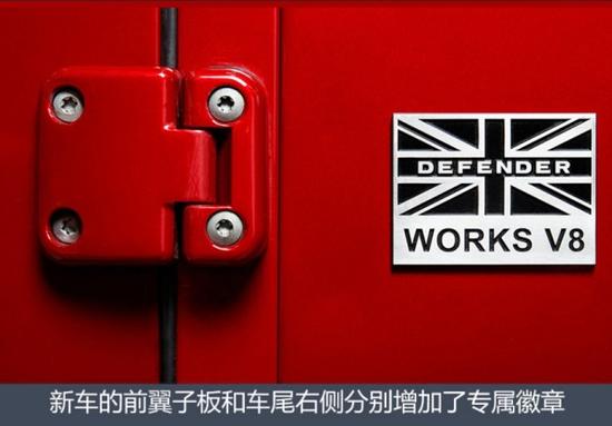 虽然新车的整体外观并没有太大的改动,但细节之处还是可以与普通版车型区分开来。例如新车的前翼子板和车尾右侧增加了专属的徽章,分别为米字旗Works V8标识和路虎品牌70周年特别版标识,这也展现了新车的独有身份。