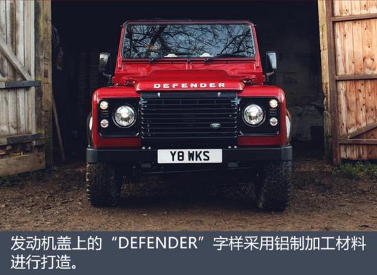 此外,新车还提供了8种车身外观颜色可选,而新车的车顶以及轮眉和前格栅都使用了黑色进行涂装,与车身形成了鲜明的对比;门把手和油箱盖以及发动机盖上的“DEFENDER”字样则采用了铝制加工材料进行打造,照明系统也升级为双LED头灯。