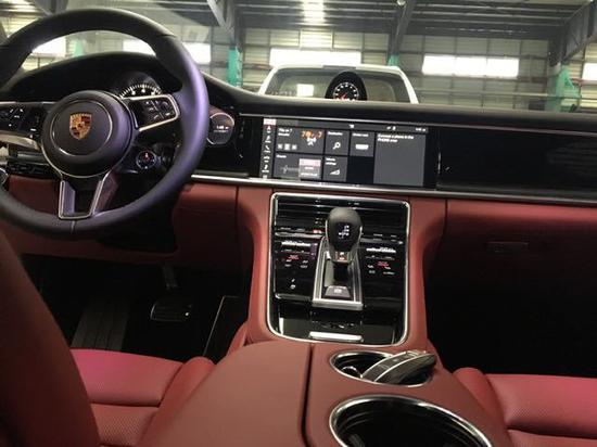 内饰设计:18款保时捷Panamera 4S内饰方面与老款相差甚大,中控台采用质感强烈的玻璃外观,挡把周围集成了多块触控感应区;仪表板中央部位是一块高分辨率12英寸触控式显示屏,模拟转速表居于仪表盘正中,两侧各有一块高分辨率显示屏。