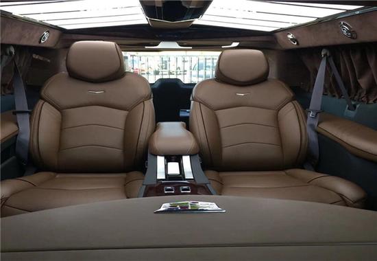 桌椅设置操控屏,简单方便,扶手台影藏一个简约的储物柜。奢华游艇木地板,有种复古格调凯迪拉克总统一号凯迪拉克总统一号让你在商务谈判中更胜一筹,全车采用真皮包裹拥有透气性、电动按摩及电动加热系统,保证整了质感的同时也保证了座椅的舒适性