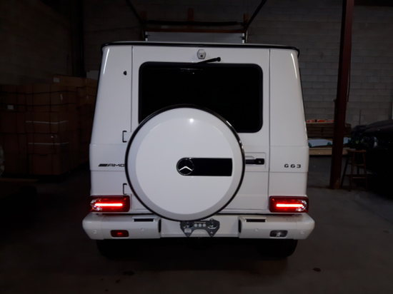 奔驰G63在外形上依然保持着老款的硬朗风格,方方正正的造型设计并没有被改变,最重要的变化在于前脸的大灯下面加入了LED日间行车灯。奔驰G63的前格栅造型和21寸的轻质AMG车型专属铝合金轮毂比GL普通版车型更加抢眼。
