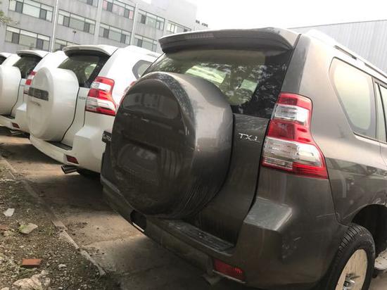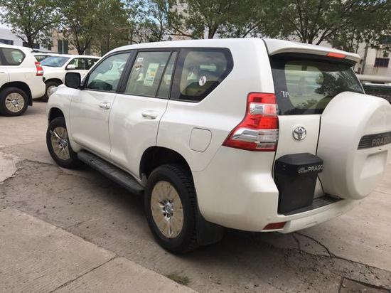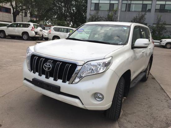 配置价格可谈 配置:2气囊,7座,天窗,巡航,智能卡,一键启动,手动座椅,双区自动空调,冰箱,拖钩,脚踏,行李架,后4电眼,镀铬前保险杠,金属漆,18轮,外挂,遥启,18款丰田霸道4000GXR 中东版天窗九气囊