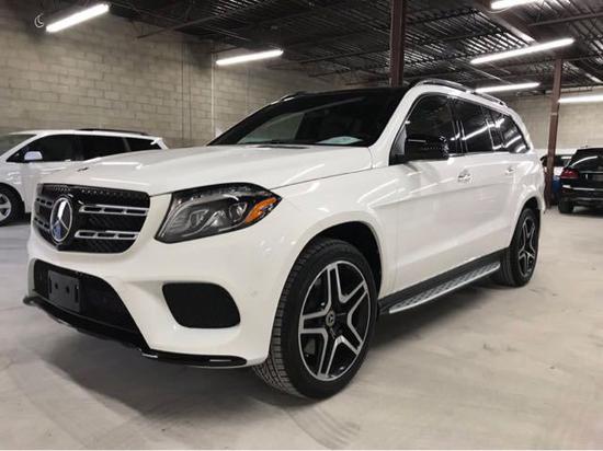 17款美规奔驰GLS450选配 ;p01豪华包(1 多色可调节室内氛围灯 2 发光迎宾板 3 车道保持辅助 4 盲点辅助 5 无钥匙进入,一键启动 6 前排座椅电动调节及座椅记忆功能 7 80G硬盘导航 8 三年免费导航地图更新 9 sifusXM收音机 10 智能手机连接系统APPLE CARPLAY),灯光包(1 全尺寸LED大灯 2 自适应远光灯),无烟煤杨木内饰,全景天窗,方向盘加热,19轮