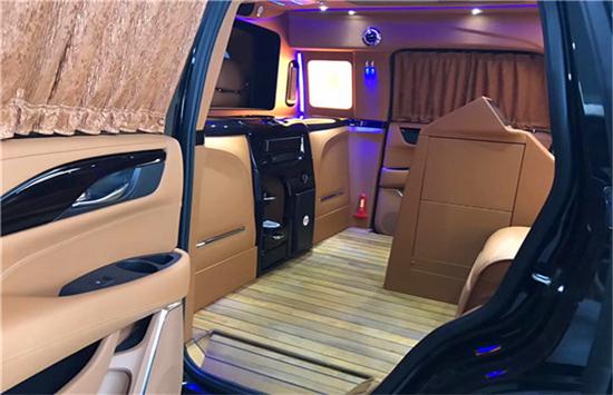 凯迪拉克总统一号内饰的设计绝对是奢华至知,奢华敢为,整体的主题效果贯穿其中,仪表盘、触摸屏、多功能方向盘以及三种不同风格的木饰搭配,绝对是吸睛手笔。内部配备了真皮桃木内饰,高级地毯,高级豪华的异域吧台,带来梦一般的境界。凯迪拉克凯雷德总统一号内部为六座设计,前排为 电动 折叠座椅,座椅收起跟中间多功能实木吧台融为一体,形成更大吧台。