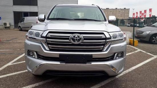 18款丰田酷路泽4500柴油版 银色配置:D4D发动机,8速手自一天变速箱,8气囊,8座,天窗,冰箱,氙灯,LED灯,大灯清洗,前后大包围,镀铬套件,桃木内饰,桃木多功能方向盘,巡航定速,倒影,蠕行模式,中央差速锁,电动座椅,航空踏板,三区空调,柴油加热系统,18寸铝合金轮毂,拖钩。