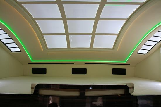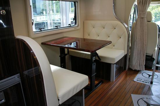 奔驰24T车内进口复合轻质材料,钢琴烤漆檀木色调。注:全文空间及内饰,均在车身未拓展情况下拍摄,车身拓展后空间更大!