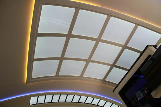 后舱电器中控,触屏控制:车身拓展、卫星电视、车内灯光、设备监测等设备。