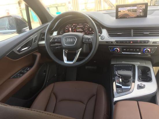内饰方面:奥迪Q7的内饰造型是典型奥迪风格,材质高档、做工精细,真皮座椅和方向盘、深棕色木纹装饰的点缀都体现出了低调的豪华感。还有仪表盘的水滴造型很别致,中控台的功能键排列有序,在排挡杆的周边,布置了MMI多媒体交互系统和一键式启动按钮,体现出奥迪崇尚科技的一面。足够大的车身尺寸,让驾乘和载物都毫无压力。