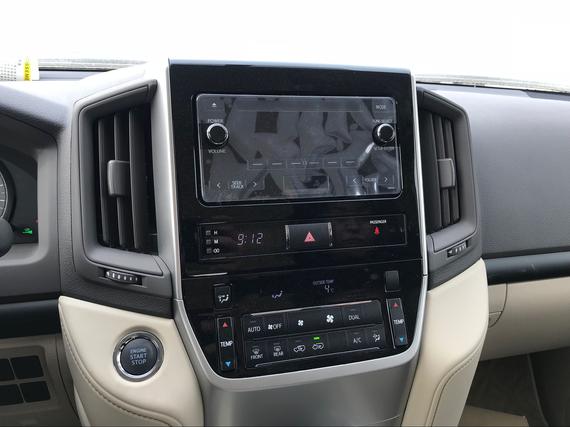 18款丰田酷路泽4000操控台没有过于繁杂 的操控按钮,多功能方向盘方便了驾驶员的操控,轻松驾驶。设计师并没有忘记它越野车的身份,所以你能找到很多硬朗的线条,其实用性和舒适性更可媲美豪华轿车。中控台换成了具有磨沙手感的金属板件,增强了内饰的质感。上方为多功能显示屏,中间为音响控制系统,左右两侧为空调出风口和空调温度控制按键。18款 丰田酷路泽4000在舒适性及便利性上为车主带来更高级别享受的同时,也进一步彰显出顶级SUV的豪华感,特别是后排,经过实际测量,它的后排腿部空间在 270-510毫米之间,已经达到了中大型车的水平。后排座椅宽大,足以满足身高195cm的贵宾,第二排座椅的电动滑动式设计,为第三排乘客提供更宽敞 的腿部空间。