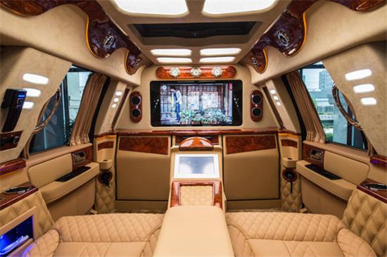 新款凯迪拉克总统一号全车真皮包裹,电动窗帘,进口柚木地板,美式咖啡机,4G无线网络系统,40寸液晶超大电视,索尼DVD,BOSE音响等高级配置。