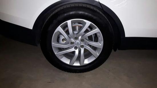2017款路虎发现五侧面整个线条还是很硬朗的,20寸的大脚,可以安装全电动的脚踏板,车身尺寸比之前的发现四长、宽、高、都有所增加。