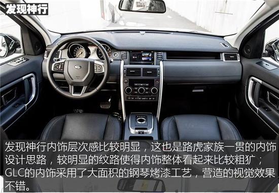 路虎发现神行视觉上很简洁,空调功能区和越野辅助功能区被独立出来以方便操作,而其他功能都集中在中控台顶部的液晶屏处。除此以外,这套棕色和黑色搭配的内饰颜色看起来很舒服,中控台顶部材质为柔软的搪塑材质,下部采用了皮革,旋钮表面材质的手感以及转动时的挡位感非常舒服,不过液晶屏由于距离驾驶员较远,开车时想要操作需要往前探身去够,不够方便。