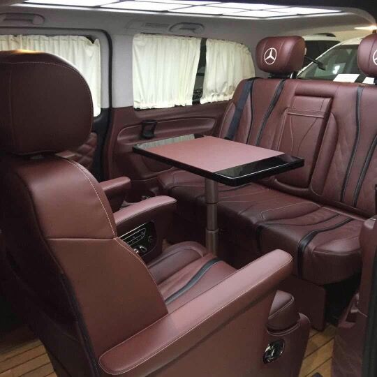 奔驰迈特斯整车座椅采用进口Nappa真皮包裹,电动调节总能让您找到舒适的坐姿,大尺寸触摸屏,配有倒影、后雷达;更有大容量冰箱,安全性,便利性都有保障; 2+2+3座椅排列,也是当前商务车最为流行的设计,二排独立航空座椅,打孔真皮处理更透气,座椅通风、按摩给予您更舒适的乘坐感受,更有360度旋转功能; 无论是照顾孩子、陪家人聊天,亦或是商务洽谈,都能让您随心所欲;此外第三排座椅展开,即可形成一张宽大舒适的沙发床!