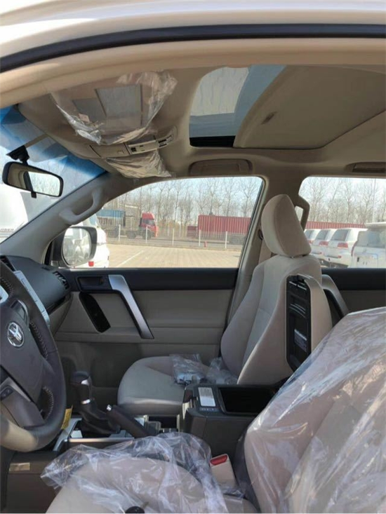 18款霸道4000高配九气囊 ,全时四驱、大油箱150升、后挂备胎、天窗、九气囊、冰箱、手动座椅,多功能方向盘、18寸熏黑轮毂、定速巡航。