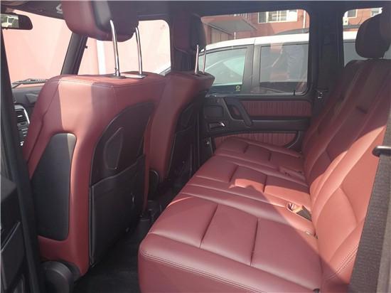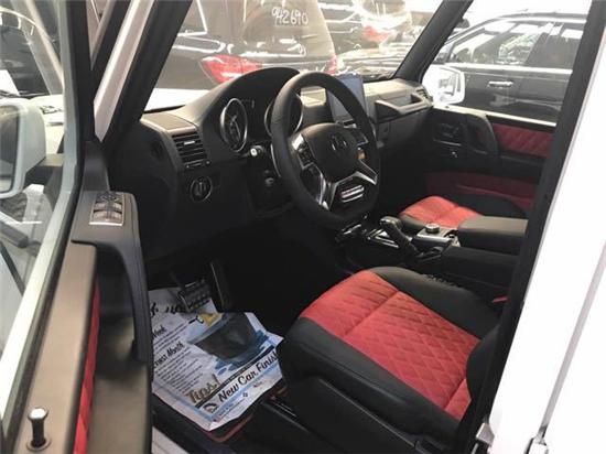 17款奔驰G63搭载了5.5T V8双涡轮增压发动机,并配备了发动机启动/停止技术,最大输出功率536马力,峰值扭矩759Nm。原装奔驰G63AMG内饰采用钻石花样的皮革座椅,做工和预料都十分考究。钢琴黑饰条和高档地毯。奔驰G63AMG中控台各种按钮个控制器十分多,并且武装了很多功能,让G级又向豪华这个字眼迈向一大步。