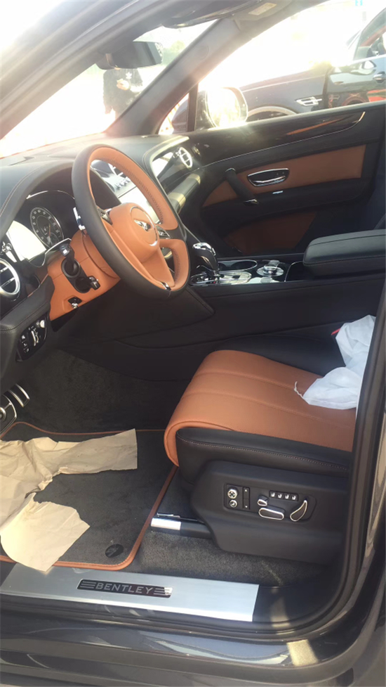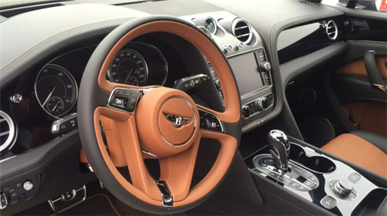 2018款宾利添越柴油版座椅包裹的皮质选用欧洲气候凉爽地区出产的上等牛皮,采用天然晾晒,不作任何套印,庄重而别致。坚固而华丽的金属内饰,每一个细节都彰显添越非凡的设计高度。中控上是一块石英表,如果您还觉得不够满意,可以换上百年灵定制的陀飞轮时钟,不过呢,这就需要土豪们掏钱选装了。