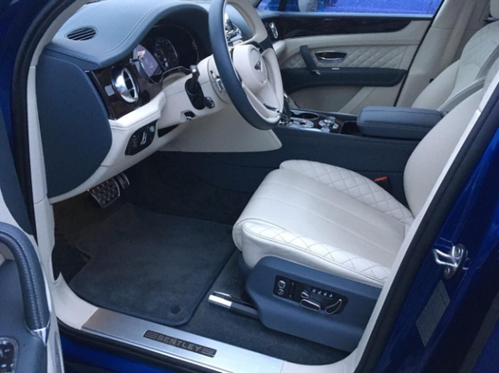 2018款宾利添越内饰由英国克鲁工厂纯手工完成,呈现给世人的永远是动力、尊贵、典雅与舒适,内饰采用非常珍贵的木材和皮革打造,中央一块碳纤维表盘的石英表做工足够精细,提升车主品味。8英寸中控多媒体系统拥有60G内置硬盘功能非常强大。 2018款宾利添越座椅包裹的皮质选用欧洲气候凉爽地区出产的上等牛皮,采用天然晾晒,不作任何套印,钻石纹和双行缝线需要40个小时候手工完成,座席之上刺绣宾利徽章所洋溢的对称风格设计,庄重而别致。坚固而华丽的金属内饰,每一个细节都彰显添越非凡的设计高度。