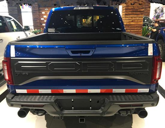 17款福特F150猛禽不同的模式下发动机的动力响应、牵引力控制、车身稳定控制等系统的工作状态略有不同以满足各种路况的需求。新款猛禽的悬挂系统也有了升级,新的FOX RacingShox避震在多种模式下的响应也非常到位,外观换装更加粗壮的前保险杠、配备新的进气格栅和前后护板、挡泥板等,车尾采用了双侧双出的排气系统,搭配17英寸合金轮圈与百路驰全地形KO2轮胎,更显硬派气息。