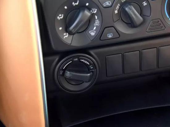 四驱系统方面,Fortuner采用了一套分时四驱系统,通过中控台上的控制旋钮可以在“H2”(两驱)、“H4”(高速四驱)、“L4”(低速四驱)之间自由切换。遇到较为复杂的非铺装路面时,我们可以将旋钮调至低速四驱,在此模式下,发动机的扭矩将进一步放大,为越野脱困提供充足的动力。