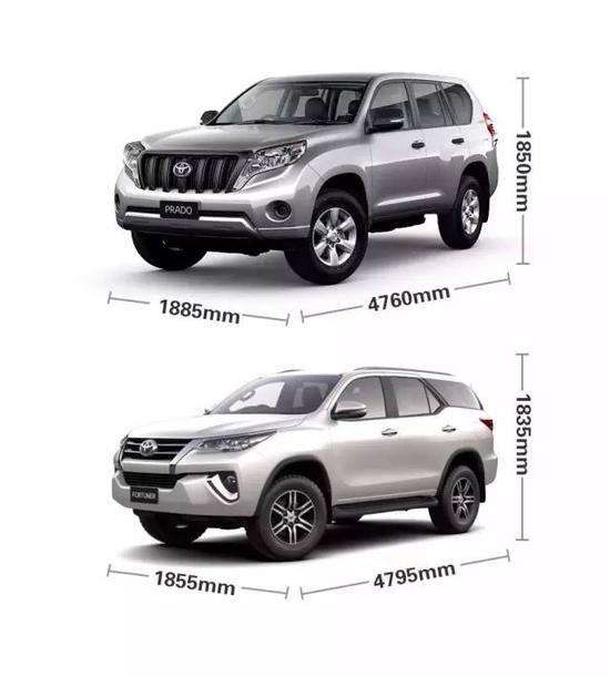 | 车型尺寸 | 穿越者 | 普拉多 |
