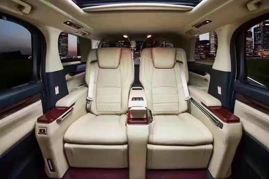 丰田埃尔法18款蒙娜丽莎总裁版全车采用耐脏的米色覆盖全车,超级奢华的隔断设计,配上32寸电动车载电视、音响系统以及豪华吧台酒柜,让埃尔法变成了一款商务休闲一体车,豪华感与科技感瞬间爆棚。清新自然的仪表台加上桃木元素的点缀,个性十足。原厂进口的小牛皮包裹着主/副座椅,高档的皮革大大提升了舒适体验。