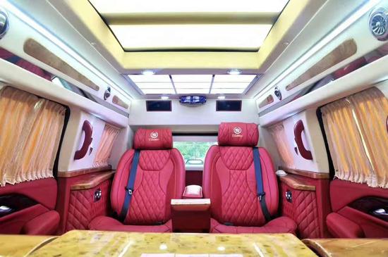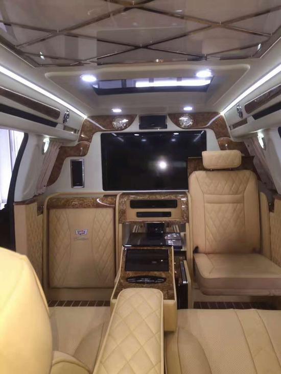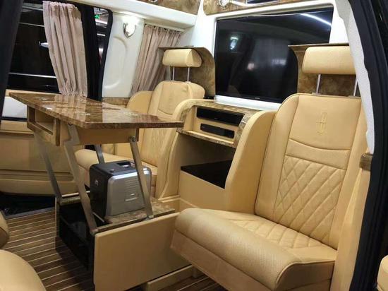 内部配备了真皮桃木内饰,高级地毯,高级豪华的异域吧台,带来梦一般的境界。用料考究,顶级真皮面料搭配实木材质,出自名家手工的工艺工序,艺术品的称号当之无愧,还拥有宽大后备箱空间,并且通过放倒第二和三排座椅,可以最大获得超大置物空间,足以放置中长途旅行的各种装备。