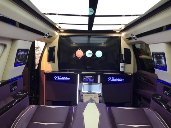 2018款凯迪拉克凯雷德总统一号长轴版,5.98米的车长足以让后排空间非常的宽敞。改装四座版本内饰变得更加的奢华,简直就是一个行走的豪宅。吧台,酒柜,升降电视,咖啡机,座椅通风,加热按摩,等等。凯雷德总统一号的改装非常的人性化,并且外观也是更加的霸气,尤其是凯雷德的大灯,一种弄弄的美式霸气。