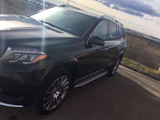 18款美规奔驰GLS450车长5130mm,轴距3075mm,完全达到了大型(Full-size)SUV的尺寸,车宽1954mm,高1850mm,车身饱满高大。本款车轮毂为标配五幅轮毂,19英寸,安装了侧脚踏板,前后驻车雷达和环车影像系统(停车辅助配置包)。奔驰GLS450侧面造型也没有强调运动感,突出了沉稳大气的风格。