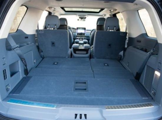 18款块头巨大的领航员,设计师好像从一开始就不担心它的空间。座椅采用2+2+3的布局,可以随意折叠调配,二三排折叠,立刻变身货车,车内空间扩升至2926升。领航员的第三排空间比很多7座MPV还要好。身高1.85米的体验者坐到第三排,无论头部还是腿部都有富余的空间。不过,遗憾的是第二排座椅并不能前后移动,所以第三排的腿部空间拓展性差一些。另外,领航员第三排座椅可以在行李厢进行电动放倒和立起来,方便了有大体积行李时的装载。