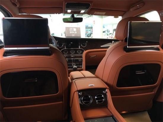 内饰方面:艺术级专业设计,新款慕尚更注重品质的升级,座椅采用了新式的菱形花纹,同样门板上也与座椅辉映增加菱 形花纹,为了提升品质车品增加了提升视觉效果的镀铬装饰,纯手工打造对得起您的金钱。宾利慕尚的皮革是由牛皮打造,皮革光鲜亮丽。车内也是由非凡工艺的木材组成,皮革与木材的相互辉映让车内显得更加精致。冷藏酒柜置于中央,方便客人心情愉悦时可消遣。车的座位舒适度也是极佳的,前后的空调配置让舒适感急剧提升。宾利慕尚将舒适融入生活的每一处,你值得拥有!