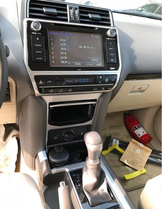 18款丰田霸道2700配置:18款中东霸道2700TXL(底挂天窗版) 配置: 天窗,底挂,2气囊,18铝合金轮毂,镀铬前中网,前小杠,氙气灯,大灯清洗 ,自动恒温空调,电眼,黑色脚踏板,尾翼,高位刹车灯,门边防蹭条 ,中央差速锁,镀铬前雾灯,胎压,迎宾带灯门槛,冰箱,三区空调,车身稳定系统,多功能方向盘,行李架,电折镜。