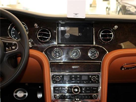 前门迎宾踏板下方带有一个铭牌,上面是手工制造的英文标识。虽说这台慕尚是用来坐的,但前排内饰依旧是极其豪华。前排座椅、中控台面、中央扶手、模板全都是高档真皮覆盖,中间带有人工缝制的菱格形纹路。主副驾座椅都带多向电动调节、带有通风、加热、记忆等功能。中控功能区上方是多媒体大屏,内置了常用的功能。中间有三个小圆表,分别是油料、时钟、水温;下方是空调、多媒体实体按键操作区域,按键数量非常多。