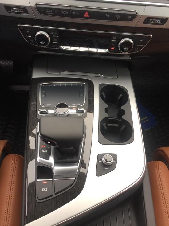 奥迪Q7的内部空间采用环抱式设计理念,即运用一条优雅的弧线设计将仪表盘收纳其中,使其犹如一道平缓的波浪。全新的档杆设计搭配杯架隔层,为您提供便利的同时,让换挡过程更加平稳顺畅。简洁的中控台配备有8.3英寸的可收纳液晶显示屏,并采用铝制和木质饰板相搭配,更加突显新车的豪华感与科技感。新车还配备有第二代MMI信息娱乐系统,并可实现触控和实体键双重操作,并且还进一步优化了操作逻辑。此外,精致的真皮仪表板和方向盘等设计,更彰显高雅品位。2016款奥迪Q7将运动性、功能性、高科技和豪华品质巧妙地融为一体。