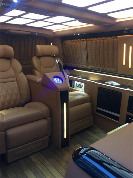 大众T6凯路威商务车,经豪华改装过内饰配置,更倾向于个人享受与商务接待的奢华感与科技舒适性,形成一个可移动的会议室体验,为驾乘者提供了宽敞灵活的内部空间,从乘坐体验到智能化配备都可谓是匠心独运。