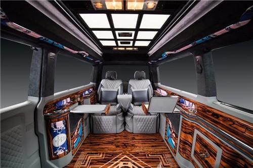 018款进口大众凯路威T6全车作隔热隔音处理,可最大程度的减少发动机及外部噪音的干扰,豪华爱马仕装饰,进口虎斑檀木地板铺设,处处彰显奢华。
