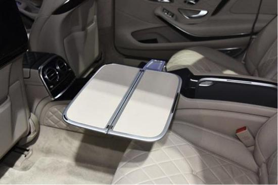 乘坐舒适性上,后排的座椅仍是同级别的标杆之作,菱形打孔线条和极致的工艺都展现出顶级豪华车应有的水准,此外后排还提供了无线充电手机架和折叠式小桌板。