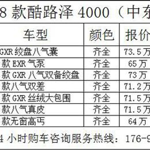 车辆优势新款丰田酷路泽4000是一款性价比较高的SUV车型,外观秉承丰田家族的大气稳重,车辆配置一应俱全,越野能力和公路巡航都有出色的表现,是一款能胜任任何场合的高端SUV车型。霸气的外观用言语不足以诠释的,稳重之余又不乏充沛的运动精神,全新设计的 保险杠和进气格栅使其前脸更具有动感不怒自威。