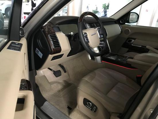 2017款路虎揽胜 (配置|询价)行政版美规。阿鲁巴金的外观看起来非常的奢华,更有档次。黑撞顶的搭配更加的增添活力。黄色的边灯是美规行政的标识。再就是美规路虎的配置,单独一个HSE包的配置就非常的高了,包括(前后座椅加热、前座椅通风、电吸门、脚感电尾门、液晶仪表、牛津打孔真皮座椅)等等。