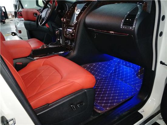 内饰材质考究:尼桑途乐采用了豪华轿车惯用的四幅风向盘设计,粗细比较合手再加上真皮加实木的用料,手握感觉极佳。另外方向盘功能强大,集成了音响、空调控制及蓝牙车载免提系统,使驾驶者在行车中更为安全。途乐Y62中东版仍然为三排座车型,内饰整体风格豪华,真皮座椅、DVD娱乐、上下坡以及胎压监测等装备也都悉数出现。新款日产途乐内饰材质也更加的考究,使用了皮革,铝以及木纹样条作为点缀。