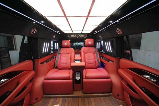 凯迪拉克总统一号内部配备了真皮桃木内饰,高级地毯,高级高贵的异域吧台,带来梦一般的境界。凯迪拉克凯雷德拥有轻松容纳七个超高贵舒适座椅的超尺寸座舱空间。内饰采用木板与铝制板的搭配。而且将会装配一台名为High-End HIFI的音响系统